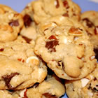 1 cup butter 1 cup brown sugar 1 cup white sugar 2 eggs 1 teaspoon vanilla extract 2 1/2 cups all-purpose flour 1 teaspoon baking soda 1 teaspoon baking powder 1/2 teaspoon salt 2/3 cup white chocolate chips 2/3 cup milk chocolate chips 2/3 semisweet chocolate chips 1/3 cup chopped walnuts 1/3 cup chopped pecans 1/3 cup chopped almonds |