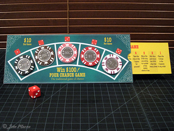 1997 Four Chance Published July 1, 2014 at 600 × 450 in Plus My own version of Four Chance that I made with genuine metal core poker chips held in place w. magnets. The instructions sheet sides out from the side of the game board.