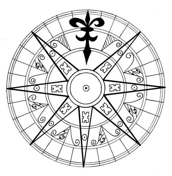 • Glue the compass rose to the cardboard circle with the fleur de lis